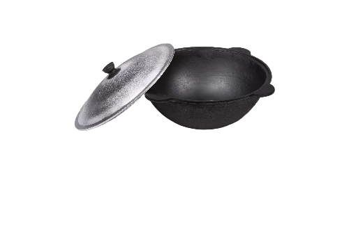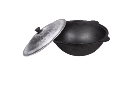 Чугунный Узбекский казан 8 л, плоское дно, с алюминиевой крышкой идеально отшлифован и имеет гладкую внутреннюю поверхность.